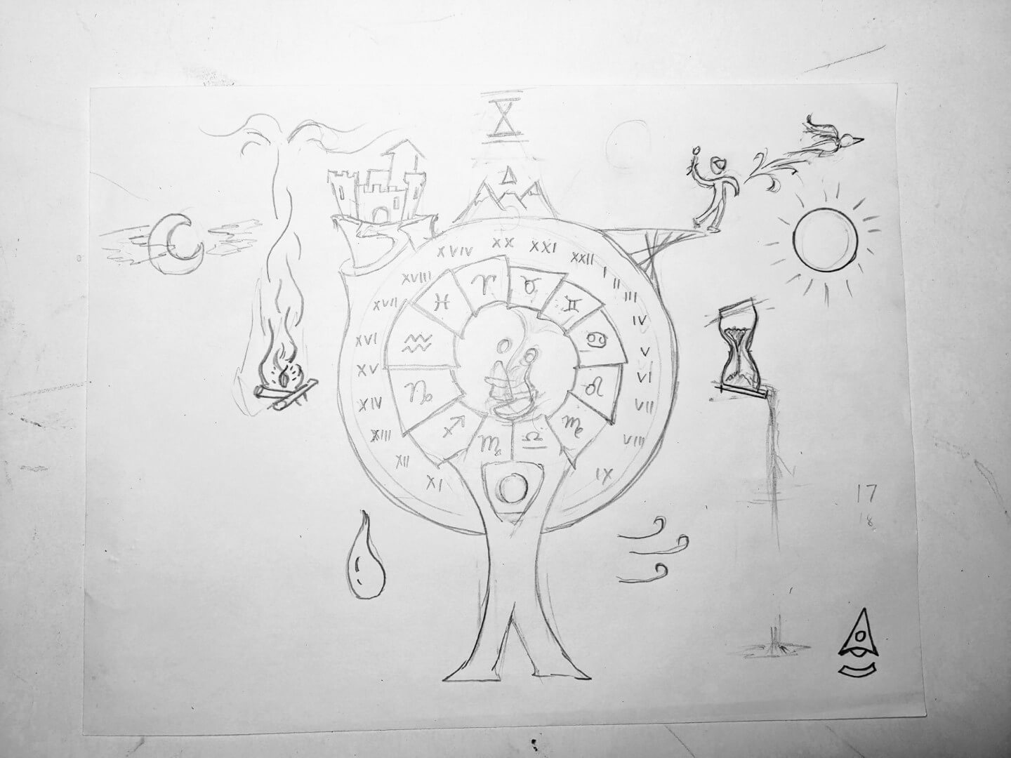 In the drawing I did representing The Wheel of Fortune, I added civil unrest, protestors and a damaged government with military protection in the bottom left corner. A challenging aspect of a cycle is when it is coming to an end, especially if it is a broken cycle. This is characterized by sorrow and loss. When individuals with power and wealth become corrupt, greedy and destructive, it leads to a broken cycle ending. It is happening now in the USA as corruption from oligarchs buying political power and media corporations. In this cycle we are all being called to rise up and work together to re-build a more sustainable system of people living in harmony with the Earth. It is where we can head towards if we all have a vision for a sustainable future, and are in tune with The Wheel of Fortune Wisdom. It is how we gain true wealth and prosperity.